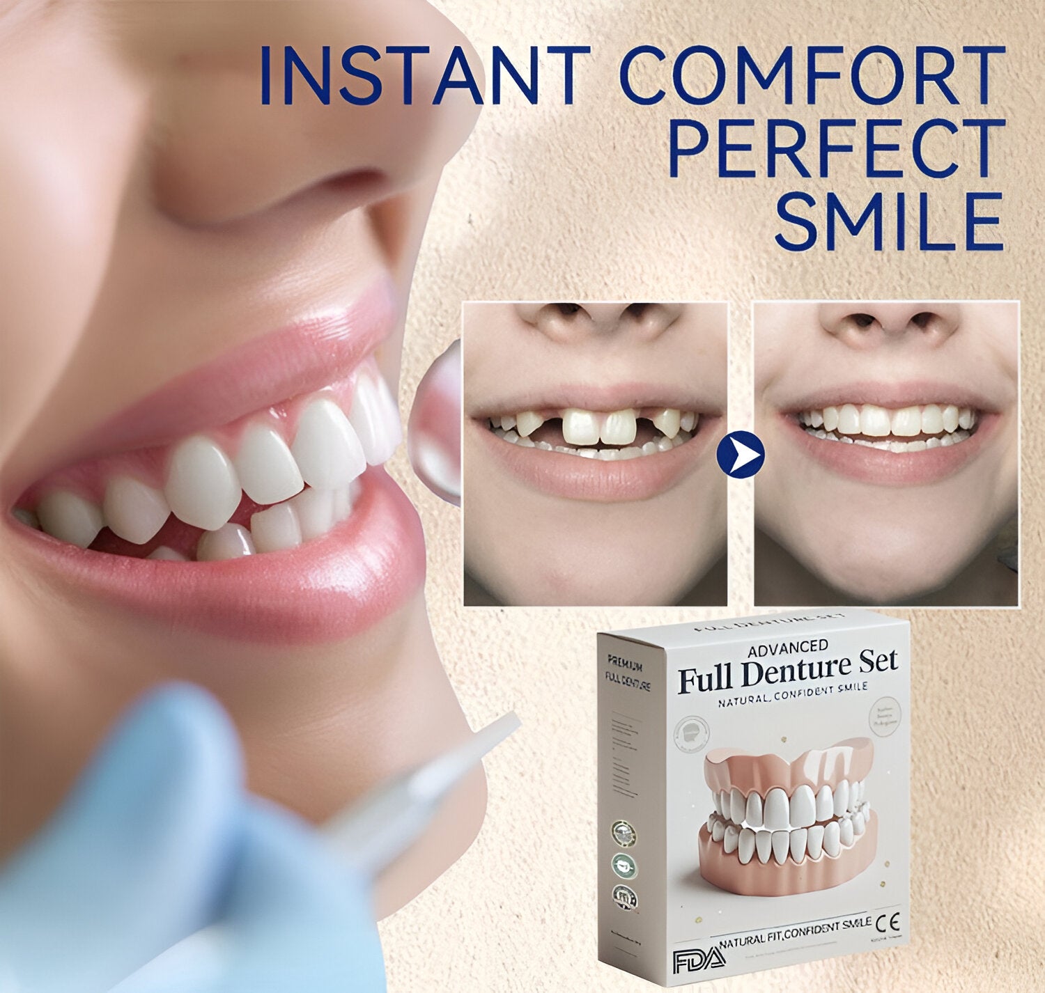 The ComforaDent™ Complete Smile System is the ultimate all-in-one solution for maintaining and enhancing your smile. It includes a meticulously crafted full set of teeth, designed to provide both functional and aesthetic benefits.